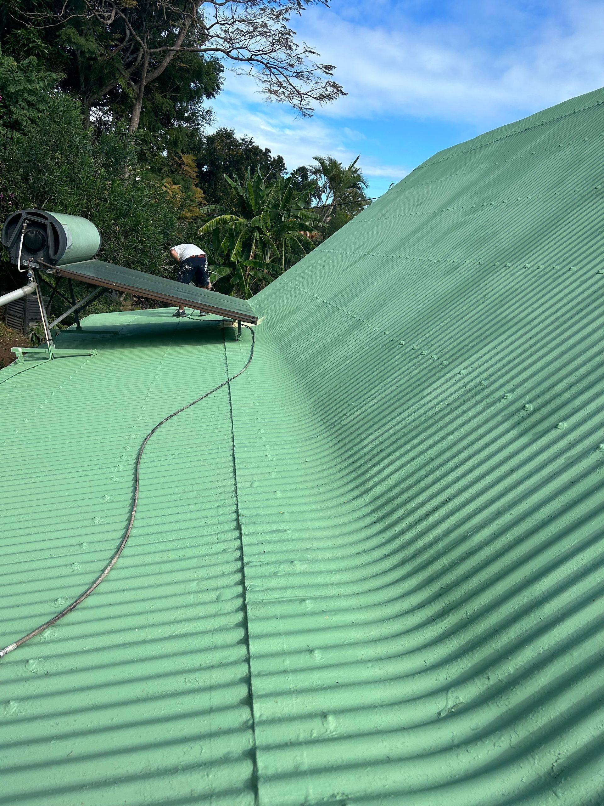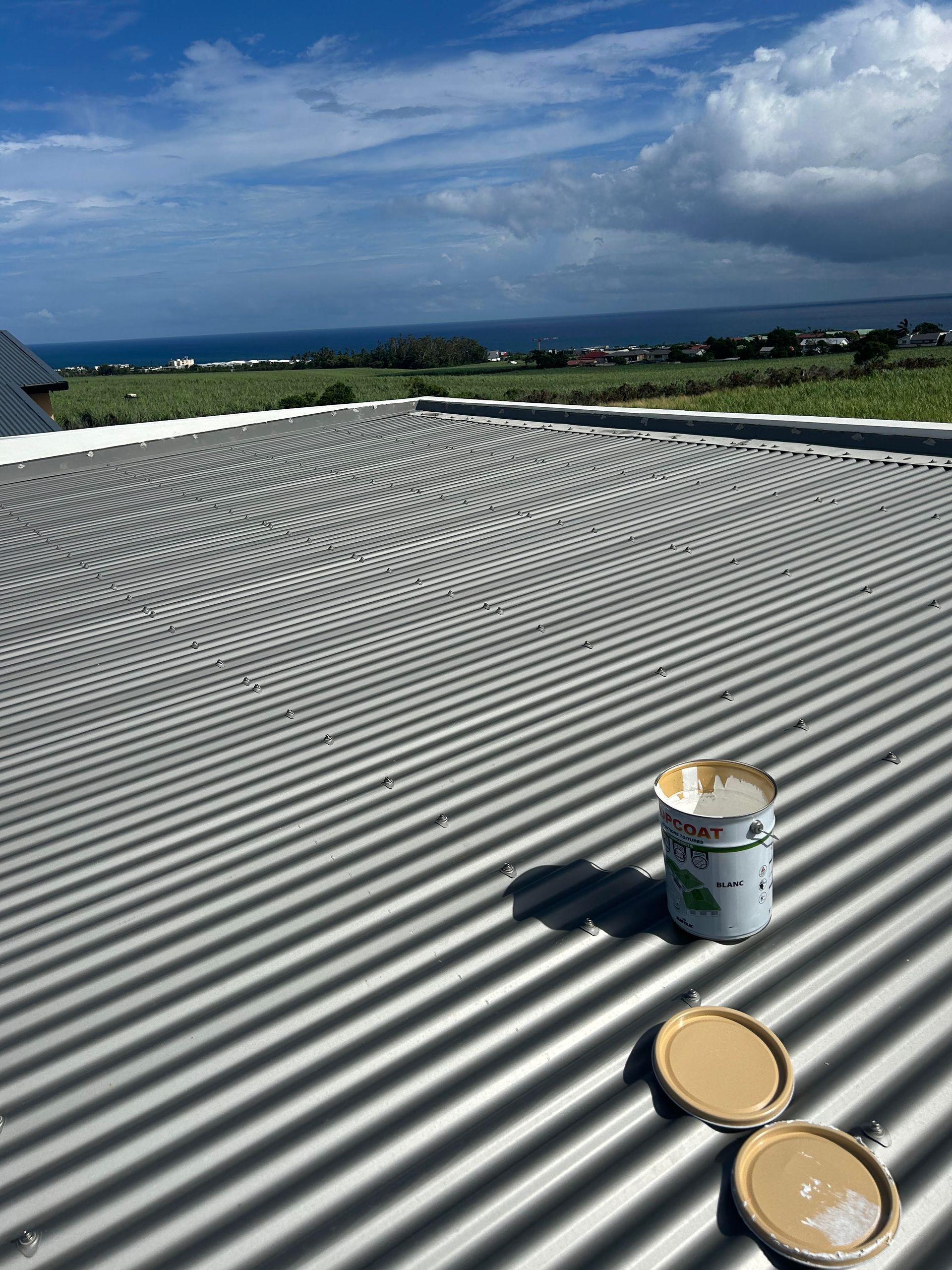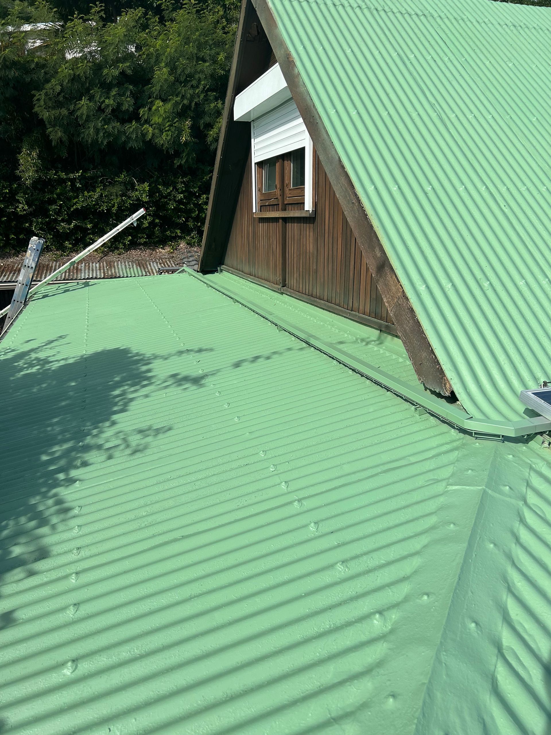 - Application de la peinture hydrofuge : Nous utilisons des produits de qualité professionnelle, spécialement conçus pour les toitures en tôle, garantissant une protection maximale et une finition uniforme.
